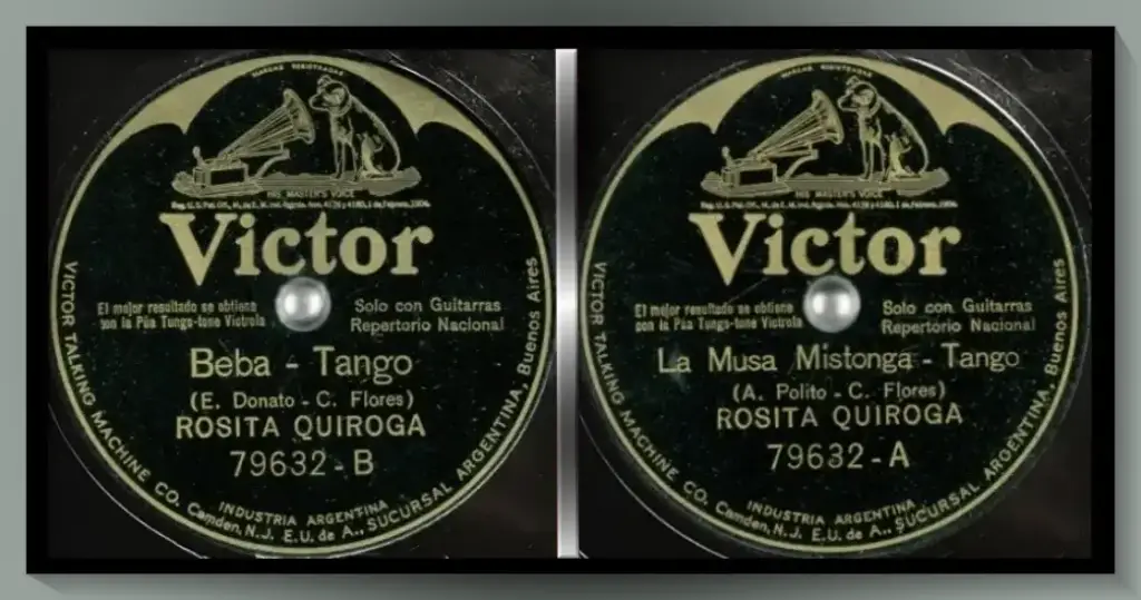 Esa voz, naturalmente, fue la de Rosita Quiroga, «la musa mistonga», que grabó, para esta gran ocasión, precisamente los tangos «La musa mistonga», creación de Celedonio Flores con el pianista Antonio Polito, dedicado a Quiroga y «Beba», también de Celedonio Flores pero con música de Edgardo Donato.