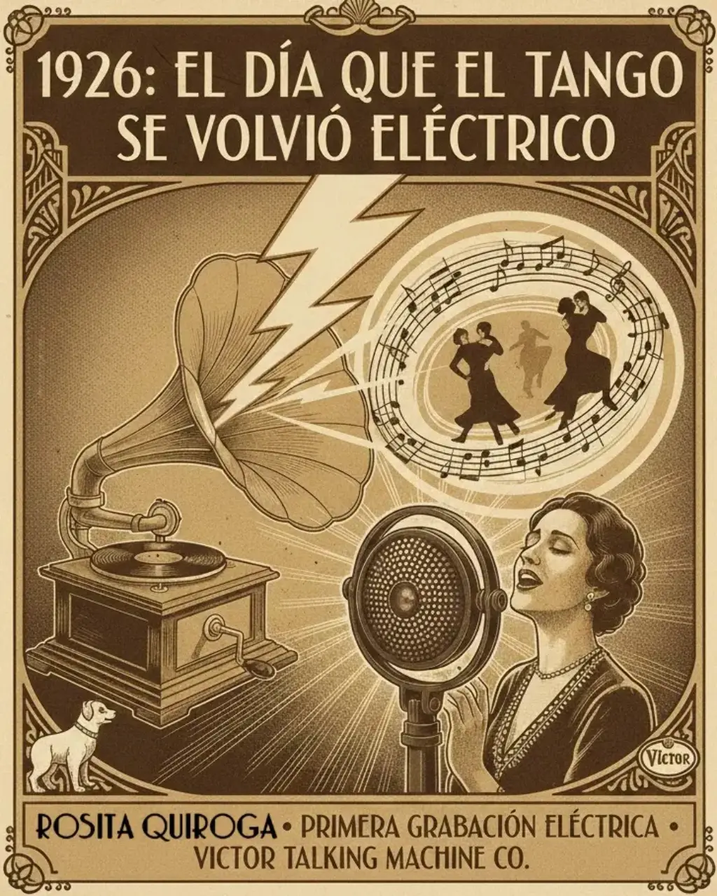 La grabación de Rosita Quiroga, publicada en marzo de 1926, para el sello Victor no fue solo un hito tecnológico, fue el «Big Bang» sonoro que transformó al tango de una expresión rústica a un fenómeno artístico global. Gracias a la sensibilidad del nuevo micrófono, Rosita Quiroga pudo cantar de una forma que antes era imposible: el susurro.