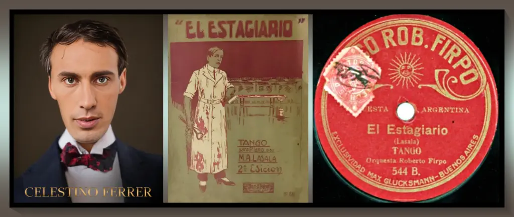 - El estagiario, tango del pianista Martín Lasala Álvarez, referido al alumno superior de medicina, o practicante, de 1917. Fue un médico uruguayo que dedicó la mayor parte de su vida a la función pública, sirviendo en el Servicio Exterior de Uruguay en París. Compuso el tango en 1917, y al año siguiente, el argentino Celestino Ferrer pianista, guitarrista, director de orquesta y compositor fue quien lo grabó por primera vez. Posteriormente, el pianista, compositor y director de orquesta argentino Roberto Firpo conoció este tango durante una de sus actuaciones en Montevideo (R.O.U.), lo llevó a Buenos Aires y también lo registró en disco para la fonogr´fica de Max Glucksmann. La palabra estagiario no existe ni en el lunfardo ni en la jerga popular. Es una adaptación del propio Lasala Álvarez- del francés stagiare, que viene a ser el practicante o estudiante avanzado de medicina que colabora en las prácticas del Hospital.